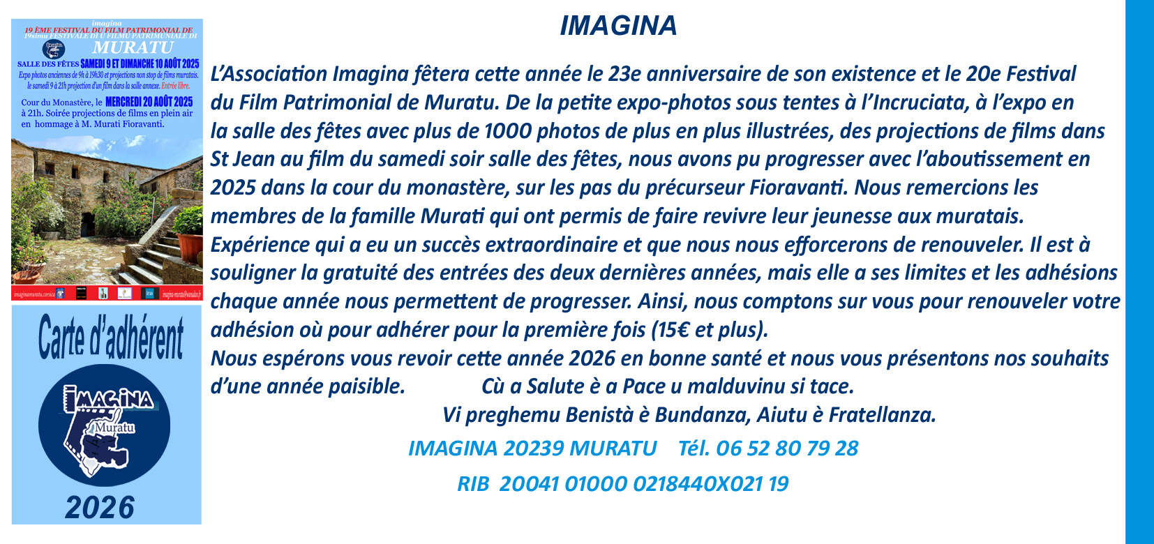 L’association Imagina vous souhaite une année 2026 paisible, en bonne santé et de nous retrouver lors de nos expos photos, films et si l’on peux renouveler la magnifique soirée dans la cour du monastère nous mettrons en œuvre toute notre énergie afin que cela soit de nouveau une réussite et contente chacun.